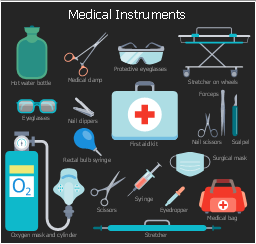 The healthcare products infographic example "Medical instruments" was designed using ConceptDraw PRO software extended with Pharmacy Illustrations solution from Health area of ConceptDraw Solution Park.