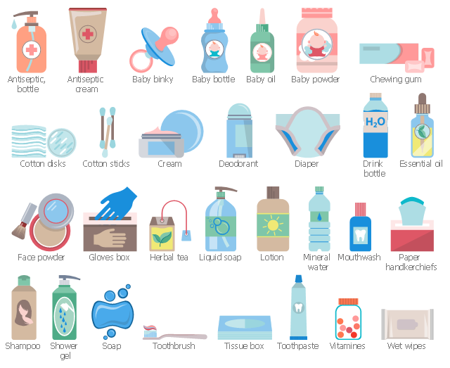 Pharmacy icons, wet wipes, vitamines, toothpaste, toothbrush, tissue box, soap, shower gel, shampoo, red cross, paper handkerchiefs, mouthwash, mineral water, lotion, liquid soap, herbal tea, hand, green leaf, gloves box, face powder, essential oil, drink bottle, diaper, deodorant, cream, cotton sticks, cotton disks, chewing gum, baby powder, baby oil, baby bottle, baby binky, antiseptic, bottle, antiseptic cream,