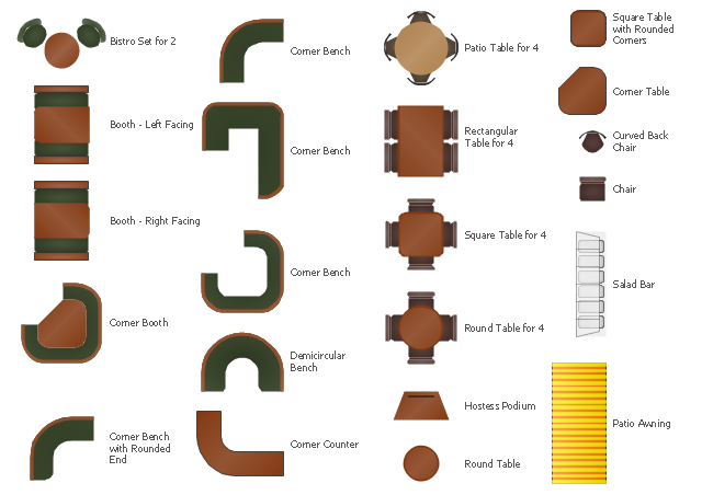 The design elements library Cafe and restaurant is included in the Cafe and Restaurant Plans solution from the Building Plans area of ConceptDraw Solution Park.