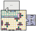 This floor plan sample shows ice cream shop equipment and furniture layout.