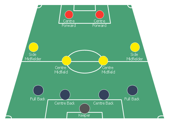 The diagram example "Association football (soccer) formation 4-4-2" was created using the ConceptDraw PRO diagramming and vector drawing software extended with the Football solution from the Sport area of ConceptDraw Solution Park.