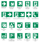 The design element library "ISO 7010 safe condition signs" contains 19 green square or rectangular symbols of safety equipment and exits for developing the fire escape plans using ConceptDraw PRO software.