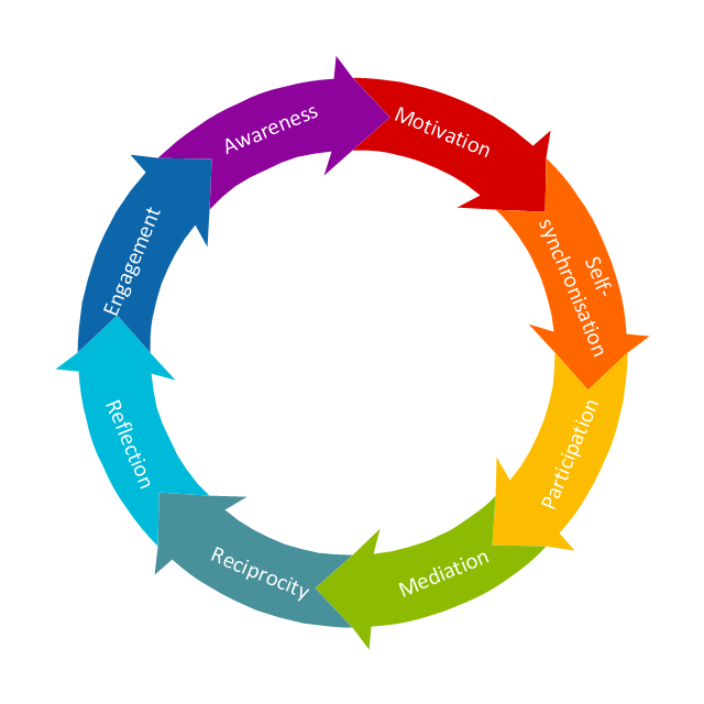 The circular arrow diagram example "Collaboration life-cycle" was created using the ConceptDraw PRO diagramming and vector drawing software extended with the Target and Circular Diagrams solution from the Marketing area of ConceptDraw Solution Park.