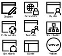 , website, team site, subsite, site, shared, site collection, public website, my sites, extranet site, blog site,