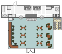 Fast food restaurant, window, casement, water cooler, washing machine, wall oven, built-in oven, tumble dryer, toilet, salad bar, round table, table, room, revolving door, refrigerator, upright freezer, range, grill, pedestal sink, food cooler, drawing shapes, double door, door, curved back, chair, corner counter, corner bench, cooker, stretchable, coffee maker, chest freezer, built-in, dishwasher, bistro set, T-room,