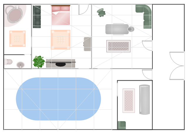 The floor plan example "Destination spa" was created using the ConceptDraw PRO diagramming and vector drawing software extended with the Gym and Spa Area Plans solution from the Building Plans area of ConceptDraw Solution Park.