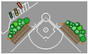 Sport field plan, minivan, car, bench,