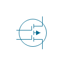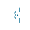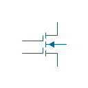 The vector stencils library "MOSFET" contains 18 symbols of MOSFET (metal–oxide–semiconductor field-effect transistor) elements.