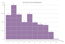 This histogram sample shows the the number of days that wind power provided a given range of generation in Denmark during 2015. It was designed on the base of the Wikimedia Commons file: Denmark Wind Generation Histogram-2015.svg. [commons.wikimedia.org/wiki/File:Denmark_Wind_Generation_Histogram-2015.svg]