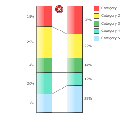 The vector stencila library "Composition charts" contains design elements of composition charts. Composition Charts are Live Objects which show the parts of the total. Use it for drawing visual dashboards in the ConceptDraw PRO diagramming and vector drawing software extended with the Composition Dashboard solution from the area "What is a Dashboard" of ConceptDraw Solution Park. www.conceptdraw.com/solution-park/composition-dashboard