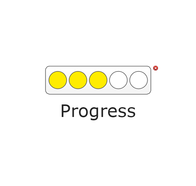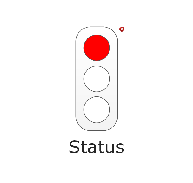 The vector stencils library "Status indicators" contains 41 visual status indicators. Each status indicator can visualize one of 2-6 information states and have a caption.