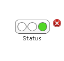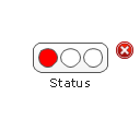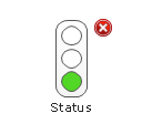 The vector stencils library "Status indicators" contains 41 visual status indicators. Each status indicator can visualize one of 2-6 information states and have a caption.