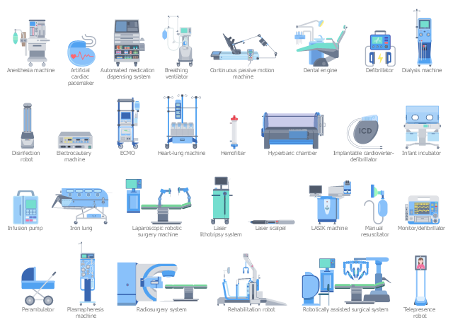 The medical instrument icon set example "Design elements - Treatment equipment" is included in Medical Illustrations solution from Health area of ConceptDraw Solution Park.