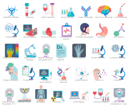 Health sciences icons, x-ray computed tomography, CT scan, vacutainer, blood tube, transfusion medicine, tactile imaging, stomach, stadium, rectangle, radiology, radiography, radiation therapy, positron emission tomography, PET, PET scanner, pathology, optometry, nuclear medicine, molecular pathology, medical ultrasonography, medical test, medical photography, medical microbiology, medical laboratory, medical imaging, medical diagnostic, magnetic resonance tomography, MRT, MRI scanner, interventional radiology, infrared thermography, immunoassay, heart, head front, hand, eyedropper, eye, endoscopy, electroencephalography, electrodiagnostic medicine, electrocardiography, echocardiography, drawing shapes, cytopathology, clinical pathology, clinical neurophysiology, clinical immunology, clinical chemistry, blood transfusion, blood test, blood drop, anatomical pathology, CT scanner, Bowl of Hygeia,