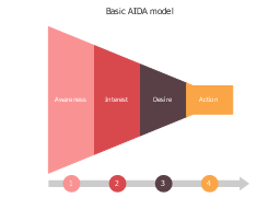 This funnel diagram sample shows 4 steps of basic AIDA model: Awareness, Interest, Desire and Action.