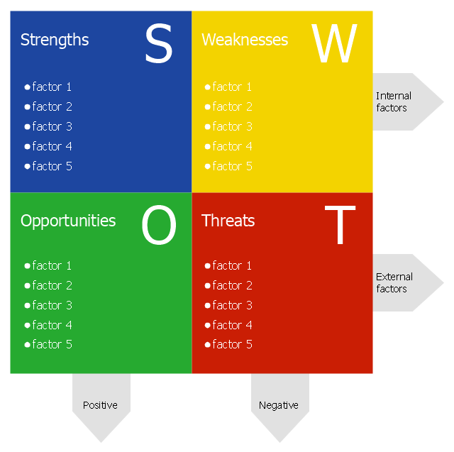 The template "SWOT analysis diagram" for the ConceptDraw PRO diagramming and vector drawing software is included in the SWOT Analysis solution from the Management area of ConceptDraw Solution Park.