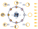 This astronomy diagram sample was redesignrd from the Wikimedia Commons file: Phases of the moon.gif. [commons.wikimedia.org/wiki/File:Phases_of_the_moon.gif] This file is licensed under the Creative Commons Attribution-Share Alike 3.0 Unported license. [creativecommons.org/licenses/by-sa/3.0/deed.en] "The lunar phase or phase of the moon is the shape of the illuminated (sunlit) portion of the Moon as seen by an observer, usually on Earth. The lunar phases change cyclically as the Moon orbits the Earth, according to the changing relative positions of the Earth, Moon, and Sun. The moon and the Earth are tidally locked, and therefore the same lunar surface always faces Earth. This face is variously sunlit depending on the position of the moon in its orbit. Ergo, the portion of this hemisphere that is visible to an observer on Earth can vary from about 100% (full moon) to 0% (new moon). The lunar terminator is the boundary between the illuminated and darkened hemispheres. Aside from some craters near the lunar poles such as Shoemaker, all parts of the Moon see around 14.77 days of sunlight followed by 14.77 days of "night" (the "dark side" of the Moon is a reference to radio darkness, not visible light darkness). The four principal lunar phases are first quarter, full moon, third quarter, and new moon (third quarter moon is also known as last quarter moon.) Each of the four lunar phases is roughly 7 days (~7.4 days) each, but varies slightly due to lunar apogee and perigee." [Lunar phase. Wikipedia] The astronomical diagram example "Phases of the moon" was created using the ConceptDraw PRO diagramming and vector drawing software extended with the Astronomy solution from the Science and Education area of ConceptDraw Solution Park.