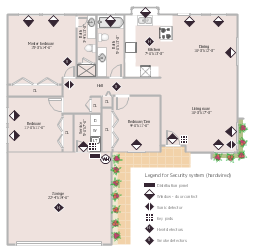 The example "Security system floor plan" was created using the ConceptDraw PRO diagramming and vector drawing software extended with the Security and Access Plans solution from the Building Plans area of ConceptDraw Solution Park.