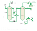 This process flow diagram (PFD) example shows an amine treating system for the removal of gaseous hydrogen sulfide from gas streams. It is used in oil refineries and chemical plants. This PFD sample was redesigned from the Wikimedia Commons file: AmineTreating.png. [commons.wikimedia.org/wiki/File:AmineTreating.png]