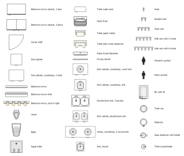 The vector stencils example "Design elements - Office restroom" is included in Office Layout Plan solition from Building Plan area of ConceptDraw Solution Park.