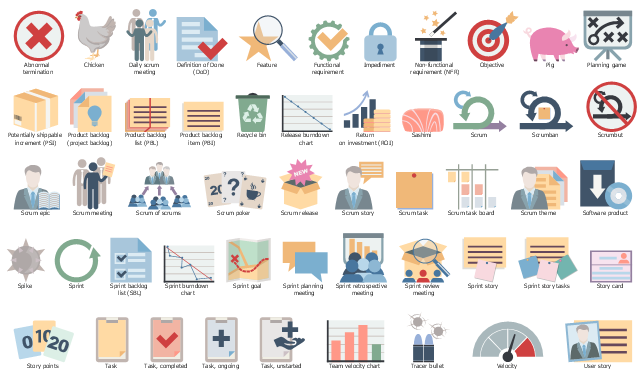 Use this clipart set to design your agile software development diagrams and infographics with ConceptDraw PRO software.