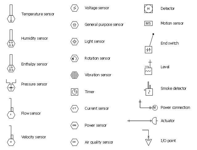 The sensor symbols example "Design Elements - RCP-Sensors" is included in Reflected Ceiling Plans solution from the Building Plans area of ConceptDraw Solution Park.