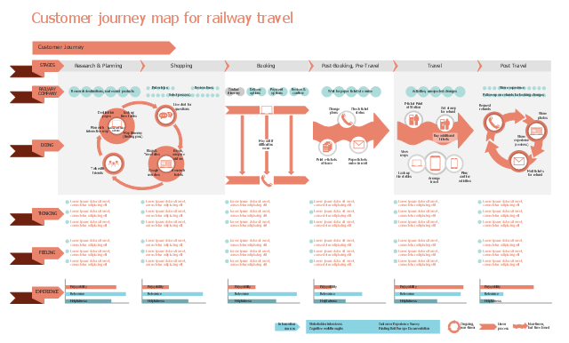 The customer journey map template "Railway travel CJM" is included in Customer Journey Mapping solution from Marketing area of ConceptDraw Solution Park.