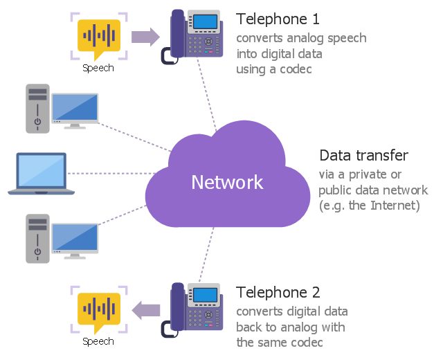 The diagram example "IP-Telephony" was designed using ConceptDraw PRO software extended with the Interactive Voice Response Diagrams solution from the Computer and Networks area of ConceptDraw Solution Park.
