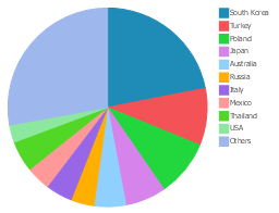 This pie chart sample shows 2008 autogas consumption by countries. It was designed on the base of the Wikimedia Commons file: 2008 autogas consumption.jpg.