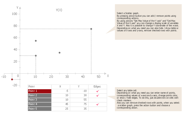 The template "Scatter graph" for the ConceptDraw PRO diagramming and vector drawing software is included in the Scatter Diagrams solution from the Graphs and Charts area of ConceptDraw Solution Park.