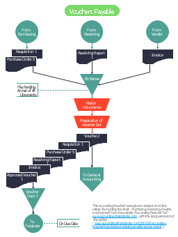 This accounting flow chart example was redrawn from the article "Accounting flowchart: Purchasing, Receiving, Payable and Payment" from the website "Accounting Financial Tax" www.accounting-financial-tax.com , with the kind permission of the author. [ www.accounting-financial-tax.com/2010/04/accounting-flowchart-purchasing-receiving-payable-and-payment/ ] The example "Voucher payable flowchart" was created using the ConceptDraw PRO software extended with the Accounting Flowcharts solution from the Finance and Accounting area of ConceptDraw Solution Park.