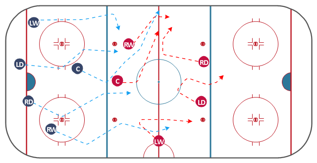 The diagram example "Ice hockey - Defensive strategy - Neutral zone trap" was created using the ConceptDraw PRO diagramming and vector drawing software extended with the Hockey solution from the Sport area of ConceptDraw Solution Park.