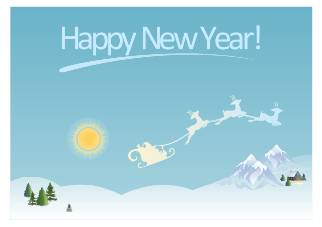 The example "New Year Card - Winter Day" was created in the ConceptDraw PRO diagramming and vector drawing software using the vector clipart library "Christmas and New Year". Use the design elements library "Christmas and New Year" to create your own unique greeting cards, presentation slides or high-resolution images that you can post to social networks, blogs and websites, send by e-mail, or print. The example "New Year Card - Winter Day" and the vector stencils library "Christmas and New Year" are included in the Holiday Solution from the Illustration area of ConceptDraw Solution Park.