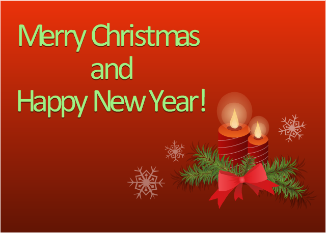 The Merry Christmas and Happy New Year greetings card template "Christmas candles" for the ConceptDraw PRO diagramming and vector drawing software is included in the Holiday Solution from the Illustration area of ConceptDraw Solution Park.