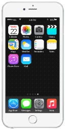 iPhone home screen with app icons, wifi icon, page control, iTunes Store icon, iPhone 6, bluetooth icon, Weather icon, Videos icon, Settings icon, Reminders icon, Photos icon, Notes icon, Music icon, Messages icon, Maps icon, Mail icon, Camera icon, Calendar icon, App Store icon,