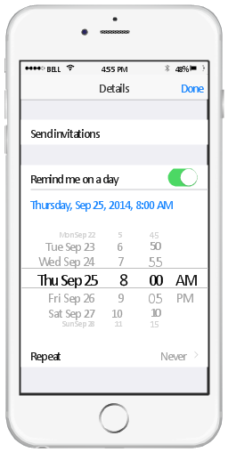 The sample "Reminders" was created using the ConceptDraw PRO diagramming and vector drawing software extended with the iPhone User Interface solution from the Software Development area of ConceptDraw Solution Park.