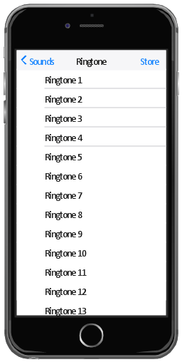 iPhone screen template - Settings - Ringtone, table view cell, table view, navigation bar, menu bar, iPhone 6, back button,