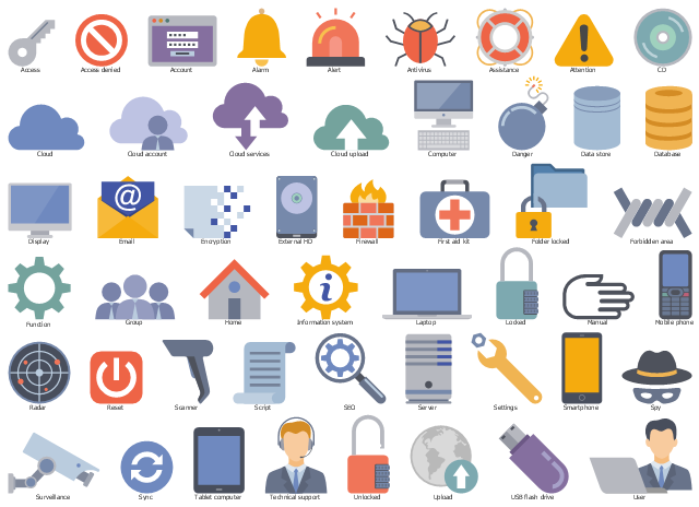 The icons example "Design elements - Workflow IT and security" is included in the Business Process Workflow Diagrams solution from the Business Processes area of ConceptDraw Solution Park.