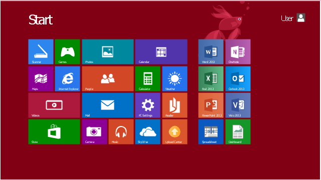 The sample "Windows 8 Start screen" was created using the ConceptDraw PRO diagramming and vector drawing software extended with the Windows 8 User Interface solution from the Software Development area of ConceptDraw Solution Park.