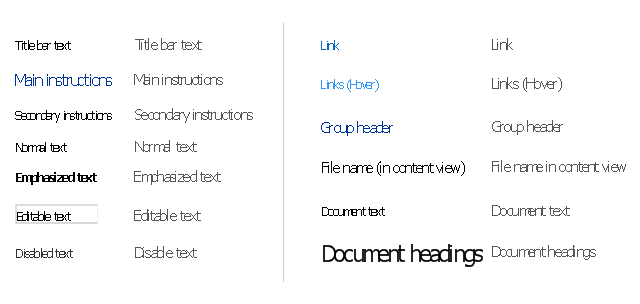 The example "Design elements - Text" was created using the ConceptDraw PRO diagramming and vector drawing software extended with the Windows 8 User Interface solution from the Software Development area of ConceptDraw Solution Park.