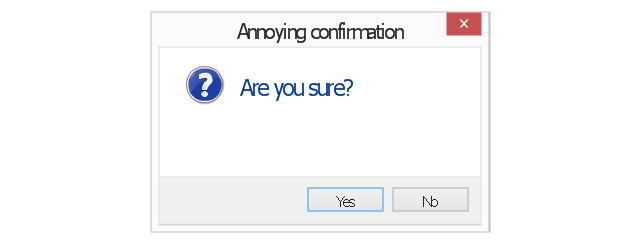 - Use message dialogs to present blocking questions that require the user's input. A blocking question is a question where the application cannot make a choice on the user's behalf, and cannot continue to fulfill it's value proposition to the user. A blocking question should present clear choices to the user. It is not a question that can be ignored or postponed.