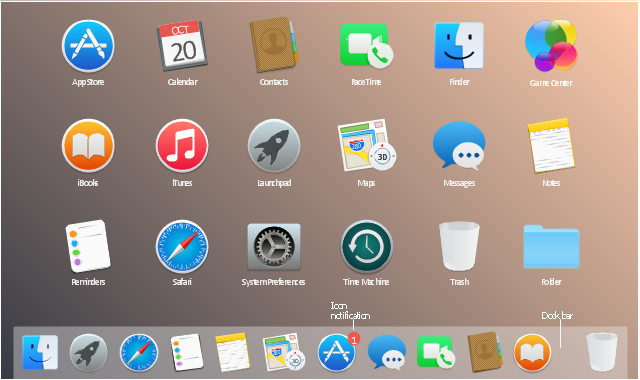 The vector stencils library "Yosemite Apps" contains 20 OS X Yosemite user interface (UI) app icons. Use these software application shortcuts to design graphic user interface (GUI) of your app for Mac OS X 10.10. "Make a great first impression with a beautiful app icon. Your app icon is the first experience users have with your app, and it can have a marked effect on their expectations. Think of your app icon as your calling card, and spend the resources necessary to ensure that it makes the right impression on users. Decide whether your app is best represented by a realistic or graphic style icon." [developer.apple.com/library/mac/documentation/UserExperience/Conceptual/OSXHIGuidelines/IconsGraphics.html#//apple_ref/doc/uid/20000957-CH14-SW1] The app icons example "Design elements - Yosemite Apps" was created using the ConceptDraw PRO diagramming and vector drawing software extended with the Mac OS User Interface solution from the Software Development area of ConceptDraw Solution Park.