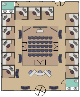"Office layouts are arranged so that staff can work together in departmental and team groupings, providing the best opportunity for efficient work flow, communication and supervision." [Office space planning. Wikipedia]
