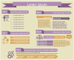 This marketing infographic template consists of design elements: title block, callout blocks, list blocks, pictograms, titled callouts, background.