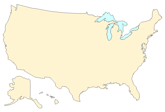 The state map contours example "United States of America - Vector stencils library" was created using the ConceptDraw PRO diagramming and vector drawing software extended with the Continent Maps solution from the Maps area of ConceptDraw Solution Park.