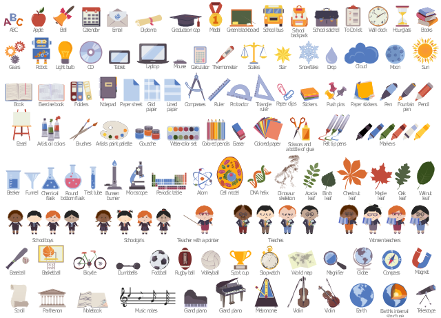 The pictogram example "Design elements - Education pictograms" was created using the ConceptDraw PRO diagramming and vector drawing software extended with the Education Infographics solition from the area "Business Infographics" in ConceptDraw Solution Park.