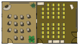 This is seminar rooms seating plan sample. "A seminar is a form of academic instruction, either at an academic institution or offered by a commercial or professional organization. It has the function of bringing together small groups for recurring meetings, focusing each time on some particular subject, in which everyone present is requested to actively participate." [Seminar. Wikipedia] The classroom floor plan example "Seminar rooms" was created using the ConceptDraw PRO diagramming and vector drawing software extended with the School and Training Plans solution from the Building Plans area of ConceptDraw Solution Park.