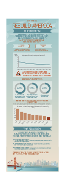 Management infogram, vertical bar chart, column chart, title text block, square brackets callout, brackets, serial line chart, line graph, road work, ribbon strip with notched edges, ribbon callout, management infographics background, donut chart indicator, city, callout with divider, bullet symbol, building, arrow text block, Golden Gate, Golden Gate Bridge,