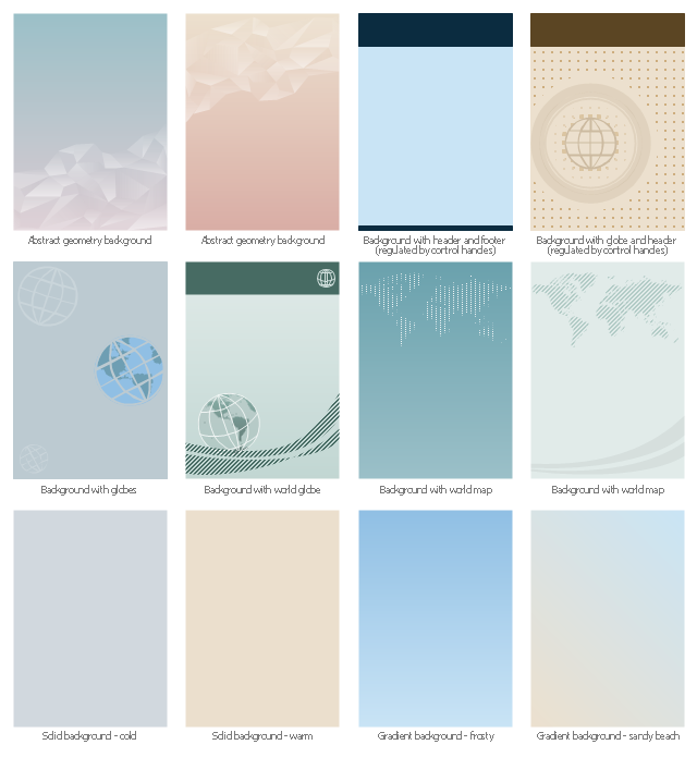 The vector stencils library "Management backgrounds" contains 12 infographic backgrounds or wallpapers. Use it to create your management infogram.