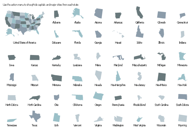 The infogram shapes example "Design elements - Management map US" was created using the ConceptDraw PRO diagramming and vector drawing software extended with the Management Infographics solition from the area "Business Infographics" in ConceptDraw Solution Park.